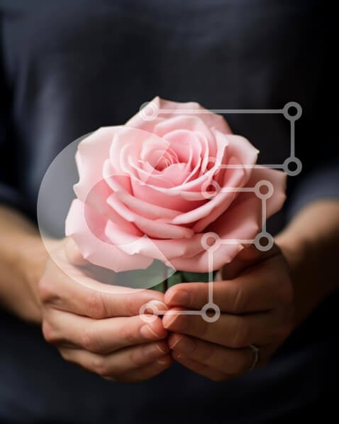 Υπάρχει δυνατότητα προσωποποίησης με δική σας φωτογραφία και προσαρμογής διαστάσεων κατόπιν παραγγελίας. Το συγεκεριμενο puzzle παρουσιαζει Αυτή η εικόνα παρουσιάζει ένα κοντινό πλάνο ενός ροζ τριαντάφυλλου που κρατιέται στα χέρια κάποιου. Η εστίαση είναι στις λεπτές λεπτομέρειες του λουλουδιού, αναδεικνύοντας τη φυσική ομορφιά και κομψότητα του. Τα χέρια αγκαλιάζουν το τριαντάφυλλο με προσοχή και τρυφερότητα, ανα