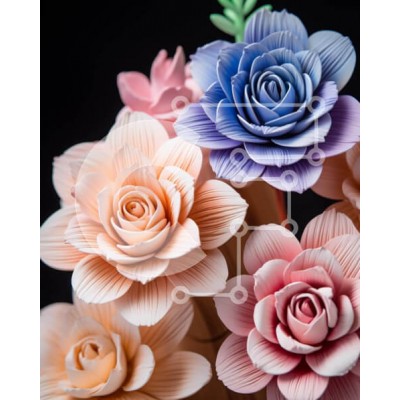 Υπάρχει δυνατότητα προσωποποίησης με δική σας φωτογραφία και προσαρμογής διαστάσεων κατόπιν παραγγελίας. Το συγεκεριμενο puzzle παρουσιαζει Η εικόνα παρουσιάζει ένα κοντινό πλάνο πολλών πλαστικών λουλουδιών σε διάφορες αποχρώσεις του ροζ, του μπλε και του μωβ. Τα λουλούδια τοποθετούνται σε ένα ανοιχτό βάζο, το οποίο είναι πιθανό να χρησιμοποιηθεί για διακοσμητικούς σκοπούς. Μπορεί να έχουν κατασκευαστεί με πηλό ή