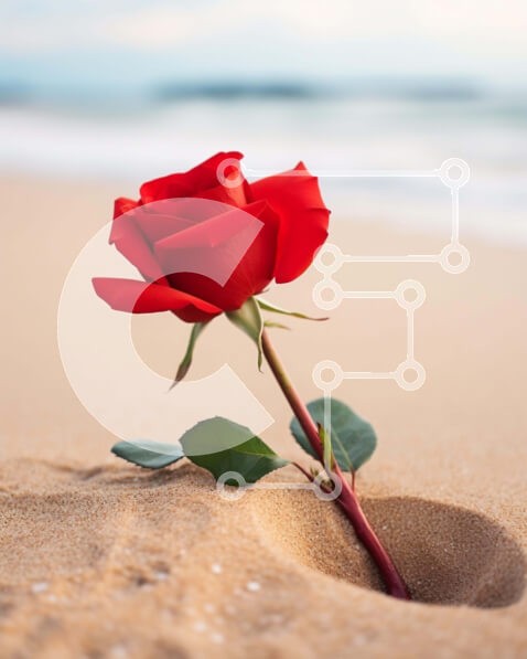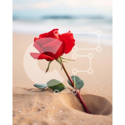 Υπάρχει δυνατότητα προσωποποίησης με δική σας φωτογραφία και προσαρμογής διαστάσεων κατόπιν παραγγελίας. Το συγεκεριμενο puzzle παρουσιαζει Η εικόνα παρουσιάζει ένα μόνο κόκκινο τριαντάφυλλο που φυτρώνει από την άμμο στην παραλία, συμβολίζοντας την αγάπη και τον ρομαντισμό. Άλλα αντικείμενα στη σκηνή περιλαμβάνουν κοχύλια, παρασυρόμενο ξύλο και μια ομπρέλα, δημιουργώντας ένα γαλήνιο σκηνικό στην παραλία. Ένα μονα