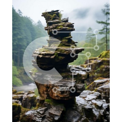 Υπάρχει δυνατότητα προσωποποίησης με δική σας φωτογραφία και προσαρμογής διαστάσεων κατόπιν παραγγελίας. Το συγεκεριμενο puzzle παρουσιαζει Αυτή η εικόνα παρουσιάζει μια στοίβα βράχων σε σχήμα πυραμίδας σε μια βραχώδη επιφάνεια. Οι βράχοι καλύπτονται από βρύα και λειχήνες, δημιουργώντας μια φυσική και ρουστίκ αίσθηση. Στο βάθος, υπάρχει ένα καταπράσινο δάσος με δέντρα και φύλλωμα. Ο συνδυασμός της πυραμίδας των βρ