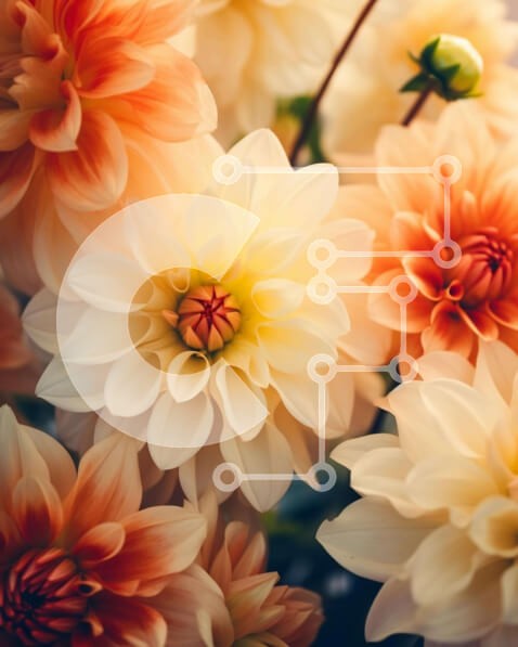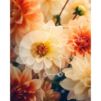 | Όνομα Προϊόντος | Intra Συλλεκτικό Ξύλινο Παζλ Plywood 4mm - Κοντινό πλάνο ανθισμένων λουλουδιών ντάλιας με πράσινο φύλλωμα Σε Ξύλινο Κουτί - Διαστάσεις: 10x10 cm – 25 κομμάτια |