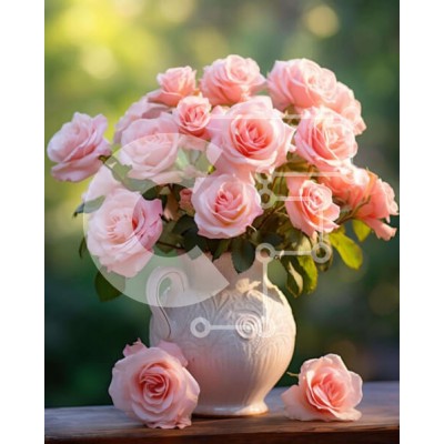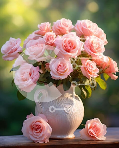 Υπάρχει δυνατότητα προσωποποίησης με δική σας φωτογραφία και προσαρμογής διαστάσεων κατόπιν παραγγελίας. Το συγεκεριμενο puzzle παρουσιαζει Η εικόνα παρουσιάζει ένα λευκό βάζο γεμάτο με ροζ τριαντάφυλλα, τα οποία είναι τοποθετημένα πάνω από ένα εξωτερικό ξύλινο τραπέζι. Υπάρχουν επίσης πολλά άλλα λουλούδια διάσπαρτα γύρω από το τραπέζι, υποδηλώνοντας ότι υπάρχουν περισσότερες από μία διάταξη στο βάζο. Είναι πιθανό