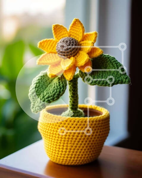 Υπάρχει δυνατότητα προσωποποίησης με δική σας φωτογραφία και προσαρμογής διαστάσεων κατόπιν παραγγελίας. Το συγεκεριμενο puzzle παρουσιαζει Η εικόνα δείχνει μια κίτρινη κροσέ ηλιέλαιο τοποθετημένη σε ένα περβάζι παραθύρου, με έναν ηλίανθο σε γλάστρα μπροστά από ένα ανοιχτό παράθυρο. Τα γύρω φύλλα ενισχύουν τη φυσική ομορφιά και τη ζωντάνια του ηλίανθου. Ένα μοναδικό puzzle που συνδυάζει ποιότητα, αισθητική και εμ