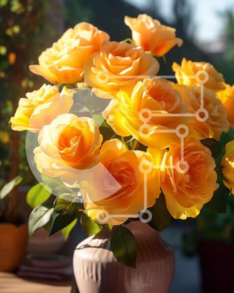 Υπάρχει δυνατότητα προσωποποίησης με δική σας φωτογραφία και προσαρμογής διαστάσεων κατόπιν παραγγελίας. Το συγεκεριμενο puzzle παρουσιαζει Η εικόνα δείχνει ένα βάζο γεμάτο με κίτρινα τριαντάφυλλα σε ένα τραπέζι εξωτερικού χώρου που περιβάλλεται από φυτά σε γλάστρες, δημιουργώντας μια γοητευτική και ζωντανή σκηνή. Τα λουλούδια φαίνονται φρέσκα και ζωντανά, προσθέτοντας ένα ποπ χρώμα στο σκηνικό. Η διάταξη αποπνέει