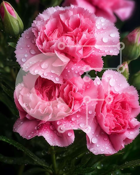 Υπάρχει δυνατότητα προσωποποίησης με δική σας φωτογραφία και προσαρμογής διαστάσεων κατόπιν παραγγελίας. Το συγεκεριμενο puzzle παρουσιαζει Η εικόνα παρουσιάζει μια ομάδα από ροζ γαρίφαλα με σταγονίδια νερού στα πέταλά τους. Τα λουλούδια φαίνεται να είναι σε πλήρη άνθιση και πιθανότατα αποτελούν μέρος μιας διάταξης ή ανθοδέσμης. Μπορεί να έχουν τοποθετηθεί στον κήπο για διακοσμητικούς λόγους ή μπορεί απλώς να βρίσ