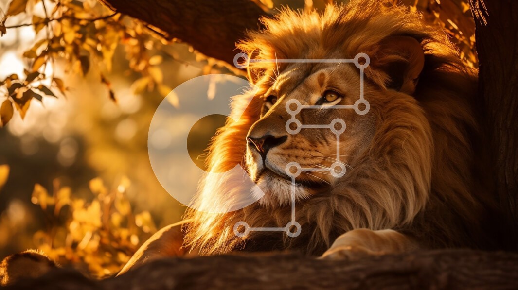 Υπάρχει δυνατότητα προσωποποίησης με δική σας φωτογραφία και προσαρμογής διαστάσεων κατόπιν παραγγελίας. Το συγεκεριμενο Puzzle 10x10 cm – 25 κομμ παρουσιαζει Αυτή η εικόνα δείχνει ένα λιοντάρι που κάθεται σε ένα δέντρο, με το κεφάλι του γυρισμένο και τα μάτια κλειστά. Η μακριά και δασύτριχη χαίτη του λιονταριού λάμπει στο φως του ήλιου, ενώ το μυώδες σώμα του εμφανίζεται σε περίοπτη θέση. Τα πόδι