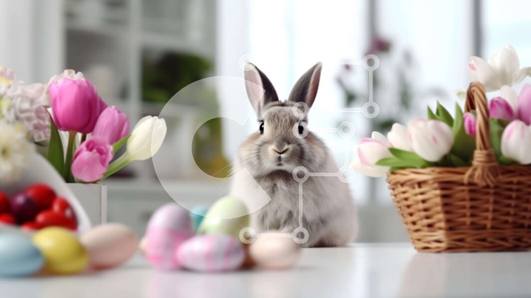 Υπάρχει δυνατότητα προσωποποίησης με δική σας φωτογραφία και προσαρμογής διαστάσεων κατόπιν παραγγελίας. Το συγεκεριμενο Puzzle 10x10 cm – 25 κομμ παρουσιαζει Η εικόνα δείχνει ένα γοητευτικό κουνέλι να κάθεται ανάμεσα σε πολύχρωμες τουλίπες και πασχαλινά αυγά στο τραπέζι. Το κουνέλι έχει μια απολαυστική έκφραση καθώς φαίνεται να απολαμβάνει την ώρα του ανάμεσα στα λουλούδια. Είτε περιμένει για συν