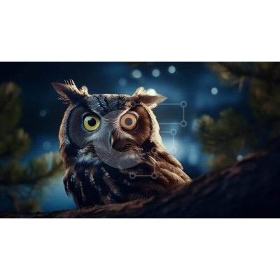 Υπάρχει δυνατότητα προσωποποίησης με δική σας φωτογραφία και προσαρμογής διαστάσεων κατόπιν παραγγελίας. Το συγεκεριμενο Puzzle 10x10 cm – 25 κομμ παρουσιαζει Αυτή η εικόνα δείχνει μια περίεργη κουκουβάγια σκαρφαλωμένη σε ένα κλαδί δέντρου. Τα μάτια της κουκουβάγιας είναι ορθάνοιχτα, δίνοντάς της μια περίεργη ματιά. Το σκούρο φόντο δημιουργεί μια νυχτερινή ατμόσφαιρα, υπονοώντας πιθανές νυχτερινές