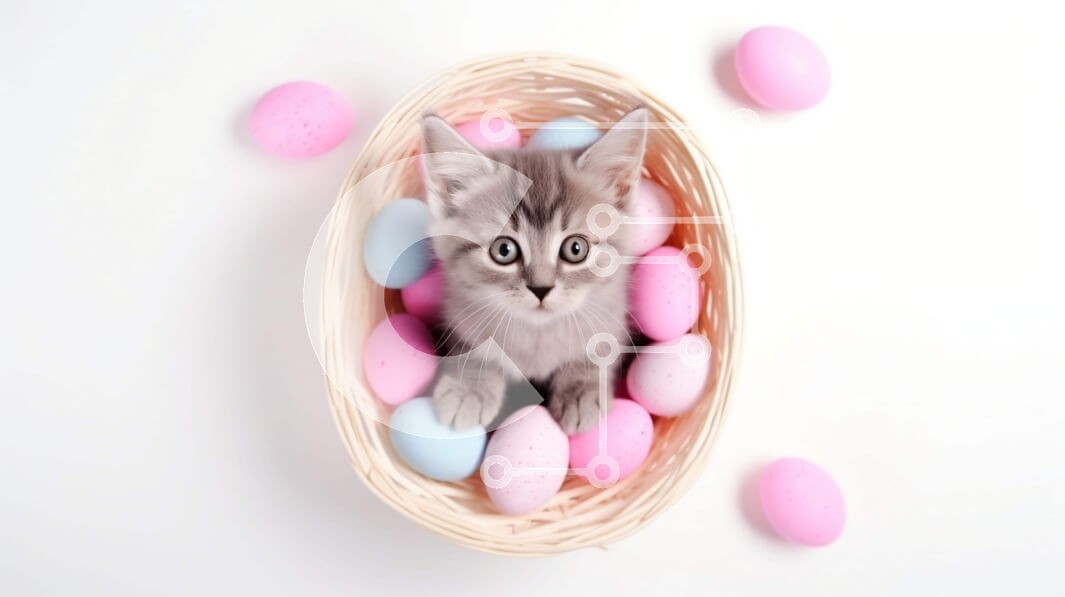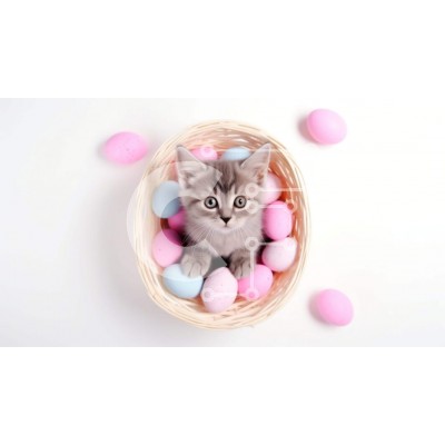 Υπάρχει δυνατότητα προσωποποίησης με δική σας φωτογραφία και προσαρμογής διαστάσεων κατόπιν παραγγελίας. Το συγεκεριμενο Puzzle 10x10 cm – 25 κομμ παρουσιαζει Η εικόνα δείχνει ένα μικρό γκρι γατάκι σε ένα πασχαλινό καλάθι γεμάτο με ροζ και μπλε αυγά. Το γατάκι φαίνεται να απολαμβάνει την ώρα του στο καλάθι, παίζοντας ή τρώγοντας πιθανώς τα πολύχρωμα αυγά, προσθέτοντας στη γιορτινή ατμόσφαιρα του Π