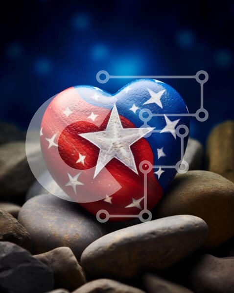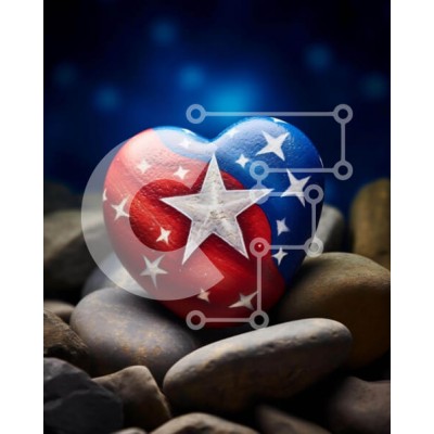 Υπάρχει δυνατότητα προσωποποίησης με δική σας φωτογραφία και προσαρμογής διαστάσεων κατόπιν παραγγελίας. Το συγεκεριμενο puzzle παρουσιαζει Η εικόνα παρουσιάζει έναν βράχο σε σχήμα καρδιάς που είναι διακοσμημένος με κόκκινα, λευκά και μπλε αστέρια. Τοποθετείται στην κορυφή πολλών βράχων, υποδηλώνοντας ότι μπορεί να είναι μέρος μιας διάταξης ή διακόσμησης. Υπάρχουν επίσης μερικές μικρές πέτρες διάσπαρτες γύρω από τ