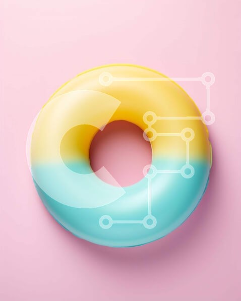 Υπάρχει δυνατότητα προσωποποίησης με δική σας φωτογραφία και προσαρμογής διαστάσεων κατόπιν παραγγελίας. Το συγεκεριμενο puzzle παρουσιαζει Η εικόνα διαθέτει ένα φουσκωτό ντόνατ σε σχήμα κύκλου, το οποίο φαίνεται στο ροζ φόντο της εικόνας. Είναι κατασκευασμένο από κίτρινους και μπλε τόνους, υποδηλώνοντας ότι θα μπορούσε να χρησιμοποιηθεί για διασκεδαστικές δραστηριότητες όπως το κολύμπι ή το παιχνίδι στο νερό. Επι