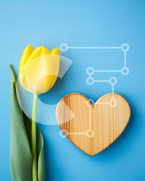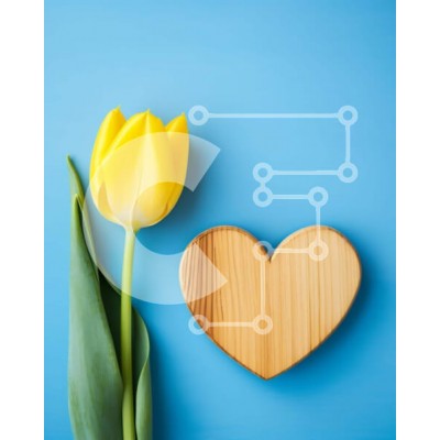 Υπάρχει δυνατότητα προσωποποίησης με δική σας φωτογραφία και προσαρμογής διαστάσεων κατόπιν παραγγελίας. Το συγεκεριμενο puzzle παρουσιαζει Αυτή η εικόνα παρουσιάζει μια ζωντανή κίτρινη τουλίπα με πράσινα φύλλα τοποθετημένα δίπλα σε σχήμα ξύλινης καρδιάς, σε ένα απαλό μπλε φόντο. Τα πέταλα της τουλίπας είναι λεία και απαλά κυρτά, αναδεικνύοντας μια πλούσια κίτρινη απόχρωση που έρχεται σε όμορφη αντίθεση με τους γή