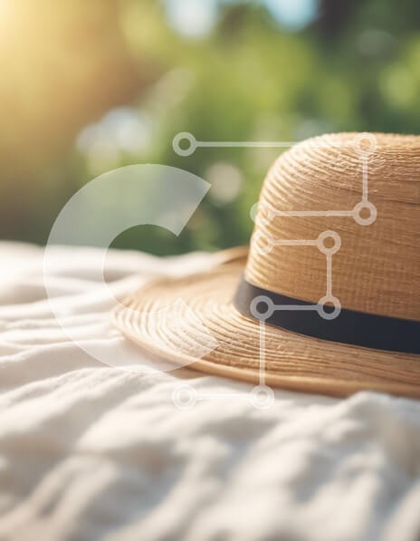 Υπάρχει δυνατότητα προσωποποίησης με δική σας φωτογραφία και προσαρμογής διαστάσεων κατόπιν παραγγελίας. Το συγεκεριμενο puzzle παρουσιαζει Η εικόνα παρουσιάζει ένα ψάθινο καπέλο που στηρίζεται σε μια απαλή λευκή επιφάνεια, που φωτίζεται από το ζεστό φως του ήλιου. Το φόντο είναι μια θολή σκηνή πρασίνου, που υποδηλώνει ένα γαλήνιο εξωτερικό περιβάλλον. Το καπέλο έχει λεπτομέρεια με μια μαύρη ταινία, που αναδεικνύε