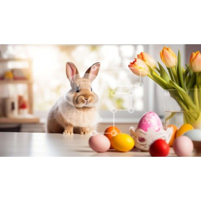 Υπάρχει δυνατότητα προσωποποίησης με δική σας φωτογραφία και προσαρμογής διαστάσεων κατόπιν παραγγελίας. Το συγεκεριμενο Puzzle 10x10 cm – 25 κομμ παρουσιαζει Η εικόνα απεικονίζει ένα καφέ κουνελάκι που κάθεται στο τραπέζι δίπλα σε πασχαλινά αυγά και τουλίπες. Το κουνέλι κοιτάζει την κάμερα, υπονοώντας ότι είναι περίεργο για τις πολύχρωμες διακοσμήσεις γύρω του. Μπορεί επίσης να είναι ένδειξη της