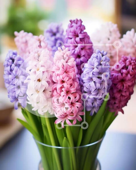 Υπάρχει δυνατότητα προσωποποίησης με δική σας φωτογραφία και προσαρμογής διαστάσεων κατόπιν παραγγελίας. Το συγεκεριμενο puzzle παρουσιαζει Αυτή η εικόνα παρουσιάζει ένα γυάλινο βάζο γεμάτο με αρκετούς ζωντανούς και πολύχρωμους υάκινθους, δημιουργώντας ένα οπτικά ελκυστικό κεντρικό κομμάτι. Τα λουλούδια τονίζονται από φρέσκα πράσινα φύλλα και ένα μικρό μπολ παρέχει πρόσθετη υποστήριξη για τα άνθη. Ένα μοναδικό pu