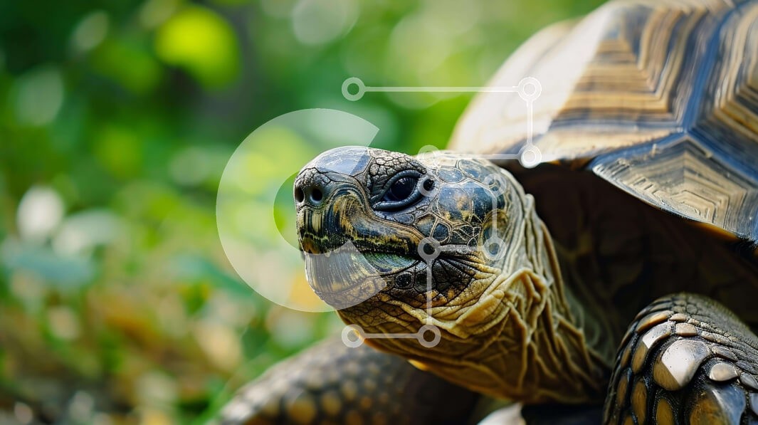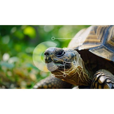 Υπάρχει δυνατότητα προσωποποίησης με δική σας φωτογραφία και προσαρμογής διαστάσεων κατόπιν παραγγελίας. Το συγεκεριμενο Puzzle 10x10 cm – 25 κομμ παρουσιαζει Αυτή η εικόνα παρουσιάζει μια μεγάλη χελώνα να κάθεται στο έδαφος, με το κεφάλι της να γέρνει προς την κάμερα. Το σώμα της χελώνας καλύπτεται από πράσινα φύλλα, υποδηλώνοντας ότι βρίσκεται σε εξωτερικό χώρο και απολαμβάνει το φυσικό περιβάλλ