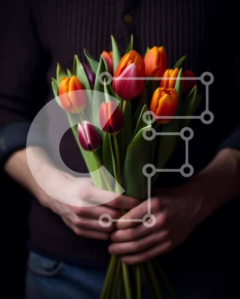 Υπάρχει δυνατότητα προσωποποίησης με δική σας φωτογραφία και προσαρμογής διαστάσεων κατόπιν παραγγελίας. Το συγεκεριμενο puzzle παρουσιαζει Η εικόνα απεικονίζει έναν άνδρα να κρατά μια διάταξη από πορτοκαλί και κόκκινες τουλίπες στα χέρια του. Το μπουκέτο τοποθετείται στην παλάμη του χεριού του άνδρα, υποδηλώνοντας ότι το άτομο το κρατά με προσοχή. Υπάρχουν επίσης πολλά πράσινα φύλλα που περιβάλλουν το μπουκέτο, γ