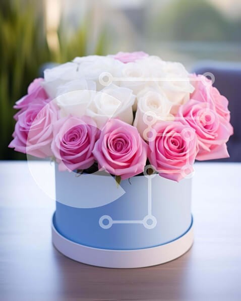 | Όνομα Προϊόντος | Intra Συλλεκτικό Ξύλινο Παζλ Plywood 4mm - Μπλε κουτί με ροζ και λευκά τριαντάφυλλα σε τραπεζάκι εσωτερικού χώρου Σε Ξύλινο Κουτί - Διαστάσεις: 10x10 cm – 25 κομμάτια |
