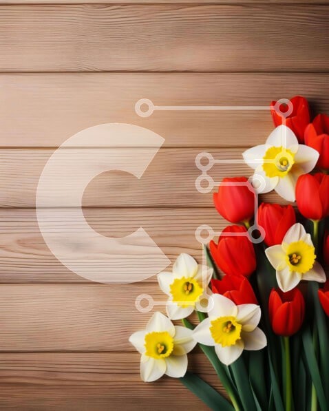 Υπάρχει δυνατότητα προσωποποίησης με δική σας φωτογραφία και προσαρμογής διαστάσεων κατόπιν παραγγελίας. Το συγεκεριμενο puzzle παρουσιαζει Αυτή η εικόνα παρουσιάζει ένα μπουκέτο με τουλίπες και νάρκισσους τοποθετημένα σε ξύλινο φόντο. Τα λουλούδια είναι κόκκινα, λευκά και κίτρινα, που αντιπροσωπεύουν τα χρώματα της άνοιξης. Χρησιμεύει ως εξαιρετική έμπνευση για να προσθέσετε μια νότα άνοιξης στη διακόσμηση του σπ