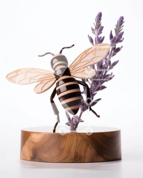 Υπάρχει δυνατότητα προσωποποίησης με δική σας φωτογραφία και προσαρμογής διαστάσεων κατόπιν παραγγελίας. Το συγεκεριμενο puzzle παρουσιαζει Αυτή η εικόνα παρουσιάζει ένα γλυπτό μέλισσας τοποθετημένο πάνω από λουλούδια λεβάντας. Το γλυπτό είναι κατασκευασμένο από ξύλο και είναι βαμμένο με μαύρες και καφέ ρίγες. Μπορεί να είναι εμπνευσμένο από το φυσικό περιβάλλον της μέλισσας ή απλώς μια καλλιτεχνική αναπαράσταση τ