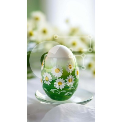 Υπάρχει δυνατότητα προσωποποίησης με δική σας φωτογραφία και προσαρμογής διαστάσεων κατόπιν παραγγελίας. Το συγεκεριμενο Puzzle 10x10 cm – 25 κομμ παρουσιαζει Αυτή η εικόνα παρουσιάζει ένα αυγό σε ένα γυάλινο μπολ τοποθετημένο σε ένα διακοσμημένο πιάτο με μαργαρίτες. Πολλά μικρά πιάτα περιβάλλουν το αυγό, υποδεικνύοντας ότι μπορεί να προορίζεται για σκοπούς σερβιρίσματος. Ένα μοναδικό Puzzle 10x1