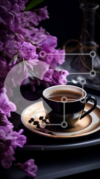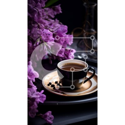Υπάρχει δυνατότητα προσωποποίησης με δική σας φωτογραφία και προσαρμογής διαστάσεων κατόπιν παραγγελίας. Το συγεκεριμενο Puzzle 10x10 cm – 25 κομμ παρουσιαζει Αυτή η εικόνα παρουσιάζει ένα φλιτζάνι καφέ τοποθετημένο σε ένα τραπέζι δίπλα σε μωβ λουλούδια. Είναι επίσης ορατό ένα άδειο πιατάκι, το οποίο μπορεί να χρησιμοποιηθεί για να χωρέσει άλλα αντικείμενα, όπως πιάτα ή ασημικά. Επιπλέον, υπάρχουν
