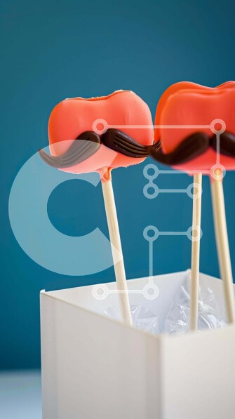 Υπάρχει δυνατότητα προσωποποίησης με δική σας φωτογραφία και προσαρμογής διαστάσεων κατόπιν παραγγελίας. Το συγεκεριμενο Puzzle 10x10 cm – 25 κομμ παρουσιαζει Αυτή η εικόνα παρουσιάζει δύο κέικ ποπ με μουστάκια σε ξυλάκια, τοποθετημένα σε λευκό κουτί το ένα δίπλα στο άλλο. Είναι διακοσμημένα με διαφορετικά σχήματα και χρώματα, όπως κόκκινο, πορτοκαλί και κίτρινο. Το γλάσο γύρω από το εξωτερικό των