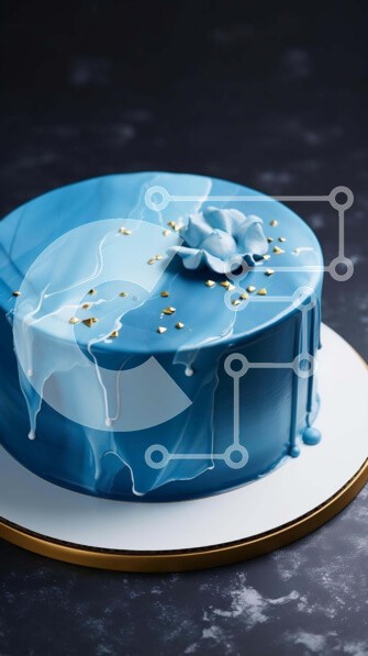 Υπάρχει δυνατότητα προσωποποίησης με δική σας φωτογραφία και προσαρμογής διαστάσεων κατόπιν παραγγελίας. Το συγεκεριμενο Puzzle 10x10 cm – 25 κομμ παρουσιαζει Η εικόνα δείχνει μια εκπληκτική μπλε τούρτα στολισμένη με λευκά παγάκια και χρυσά πασπαλίσματα. Το κέικ είναι κομψά τοποθετημένο σε μια μεταλλική πλάκα σε σχήμα οβάλ, υπονοώντας το προηγούμενο σερβίρισμα. Φαίνεται να είναι φρεσκοψημένο, εμφα