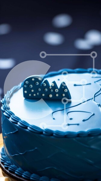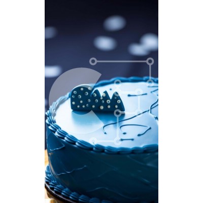 Υπάρχει δυνατότητα προσωποποίησης με δική σας φωτογραφία και προσαρμογής διαστάσεων κατόπιν παραγγελίας. Το συγεκεριμενο Puzzle 10x10 cm – 25 κομμ παρουσιαζει Αυτή η εικόνα παρουσιάζει ένα μπλε κέικ με γλάσο και ζαχαρωτό, τοποθετημένο σε μια μεταλλική πλάκα σε σχήμα οβάλ. Το κέικ φαίνεται να επιπλέει στον αέρα και υπάρχουν μικρές κουκκίδες διάσπαρτες στην επιφάνεια του τραπεζιού, υποδεικνύοντας τη