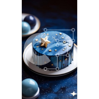 Υπάρχει δυνατότητα προσωποποίησης με δική σας φωτογραφία και προσαρμογής διαστάσεων κατόπιν παραγγελίας. Το συγεκεριμενο Puzzle 10x10 cm – 25 κομμ παρουσιαζει Η εικόνα παρουσιάζει μια μπλε τούρτα διακοσμημένη με αστέρια και χρυσά διακοσμητικά. Τοποθετείται πάνω από δύο πιάτα, τα οποία καλύπτονται και τα δύο με σκούρα μπλε τραπεζομάντιλα. Υπάρχουν επίσης αρκετές μικρές μπλε και λευκές μπάλες που κά