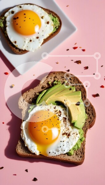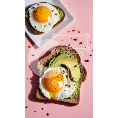Υπάρχει δυνατότητα προσωποποίησης με δική σας φωτογραφία και προσαρμογής διαστάσεων κατόπιν παραγγελίας. Το συγεκεριμενο Puzzle 10x10 cm – 25 κομμ παρουσιαζει Η εικόνα παρουσιάζει μια νόστιμη σκηνή πρωινού με δύο φέτες τοστ με τηγανητά αυγά και αβοκάντο. Η μία φέτα τοποθετείται σε λευκό πιάτο ενώ η άλλη παρουσιάζεται σε ροζ φόντο, γαρνιρισμένη με νιφάδες τσίλι. Ο ζωηρός κίτρινος κρόκος του αυγού ξ