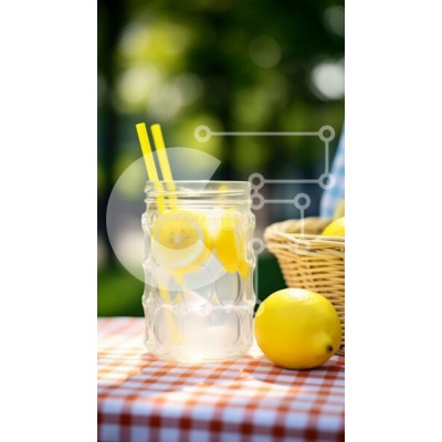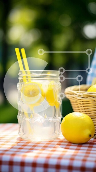 Υπάρχει δυνατότητα προσωποποίησης με δική σας φωτογραφία και προσαρμογής διαστάσεων κατόπιν παραγγελίας. Το συγεκεριμενο Puzzle 10x10 cm – 25 κομμ παρουσιαζει Η εικόνα δείχνει ένα γυάλινο βάζο γεμάτο με λεμόνια και δύο καλαμάκια, συνοδευόμενο από ένα καλάθι στην επιφάνεια του τραπεζιού, κατάλληλο για να κρατάτε αντικείμενα όπως φαγητό ή ποτά. Διάφορα φρούτα όπως μήλα, σταφύλια και φράουλες απλώνον