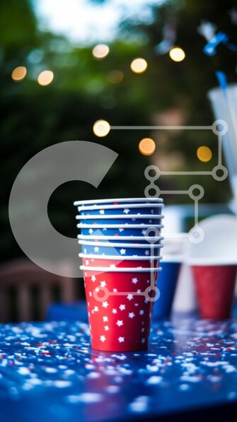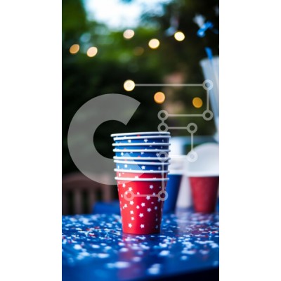 Υπάρχει δυνατότητα προσωποποίησης με δική σας φωτογραφία και προσαρμογής διαστάσεων κατόπιν παραγγελίας. Το συγεκεριμενο Puzzle 10x10 cm – 25 κομμ παρουσιαζει Η εικόνα παρουσιάζει μια συλλογή από κόκκινα, λευκά και μπλε χάρτινα ποτήρια τοποθετημένα σε ένα τραπέζι εξωτερικού χώρου, συνοδευόμενα από διάσπαρτα πλαστικά ποτήρια, μερικά γεμάτα με ποτά. Ένα μπουκάλι νερό υποδηλώνει την παρουσία ποτών πο