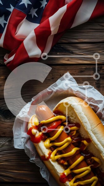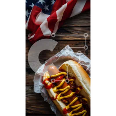 Υπάρχει δυνατότητα προσωποποίησης με δική σας φωτογραφία και προσαρμογής διαστάσεων κατόπιν παραγγελίας. Το συγεκεριμενο Puzzle 10x10 cm – 25 κομμ παρουσιαζει Η εικόνα δείχνει ένα κουλούρι για χοτ-ντογκ με κέτσαπ, μουστάρδα και διάφορα καρυκεύματα τοποθετημένα πάνω από μια αμερικανική σημαία. Γύρω από το κουλούρι χοτ ντογκ υπάρχουν πολλά κομμάτια ψωμιού, που υποδηλώνουν ένα φρεσκοπαρασκευασμένο γε
