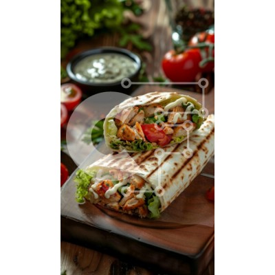 Υπάρχει δυνατότητα προσωποποίησης με δική σας φωτογραφία και προσαρμογής διαστάσεων κατόπιν παραγγελίας. Το συγεκεριμενο Puzzle 10x10 cm – 25 κομμ παρουσιαζει Αυτή η εικόνα παρουσιάζει ένα υπέροχο περιτύλιγμα γεμάτο με ψητό κοτόπουλο, φρέσκο μαρούλι, ντομάτες και αγγούρια, όλα περιχυμένα με μαγιονέζα. Το περιτύλιγμα είναι όμορφα ψημένο στη σχάρα, με χρυσοκαφέ σημάδια και παρουσιάζεται σε ξύλινη