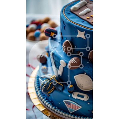 Υπάρχει δυνατότητα προσωποποίησης με δική σας φωτογραφία και προσαρμογής διαστάσεων κατόπιν παραγγελίας. Το συγεκεριμενο Puzzle 10x10 cm – 25 κομμ παρουσιαζει Η εικόνα παρουσιάζει μια μπλε τούρτα διακοσμημένη με διάφορα διακοσμητικά με αθλητικά θέματα, όπως ποδοσφαιράκια, μπάλες ποδοσφαίρου και ρόπαλα του μπέιζμπολ. Υπάρχουν επίσης μπισκότα τοποθετημένα πάνω από την τούρτα, υποδηλώνοντας ότι φτιάχ