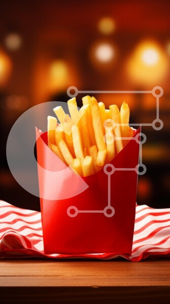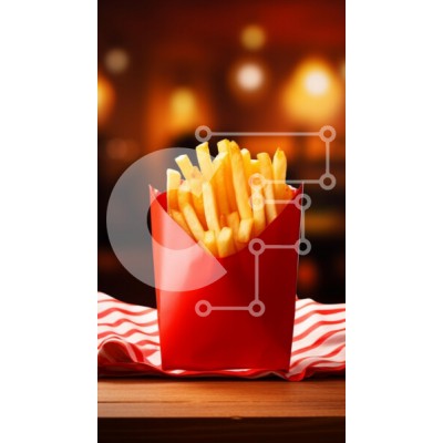 Υπάρχει δυνατότητα προσωποποίησης με δική σας φωτογραφία και προσαρμογής διαστάσεων κατόπιν παραγγελίας. Το συγεκεριμενο Puzzle 10x10 cm – 25 κομμ παρουσιαζει Η εικόνα δείχνει μια ζωντανή μερίδα από χρυσές τηγανιτές πατάτες σε ένα κλασικό κόκκινο δοχείο. Οι πατάτες είναι τακτοποιημένες, με πολλές να κολλάνε πάνω από το χείλος του δοχείου. Το σκηνικό αποτελείται από ζεστό, απαλό φωτισμό, που δημιου