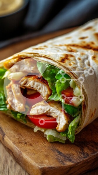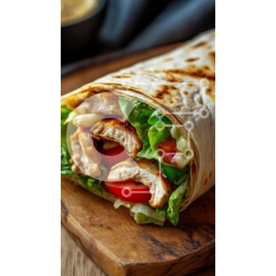 Υπάρχει δυνατότητα προσωποποίησης με δική σας φωτογραφία και προσαρμογής διαστάσεων κατόπιν παραγγελίας. Το συγεκεριμενο Puzzle 10x10 cm – 25 κομμ παρουσιαζει Αυτή η εικόνα παρουσιάζει ένα νόστιμο περιτύλιγμα κοτόπουλου, με ψητές λωρίδες κοτόπουλου, τραγανό μαρούλι, ντομάτες σε φέτες και άλλα φρέσκα λαχανικά, όλα τακτοποιημένα σε φρυγανισμένο ψωμί. Το περιτύλιγμα παρουσιάζεται σε ξύλινη σανίδα κοπ