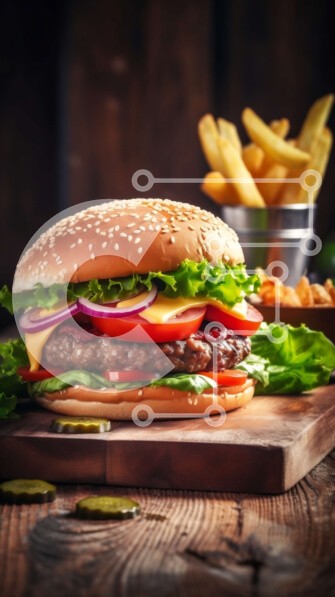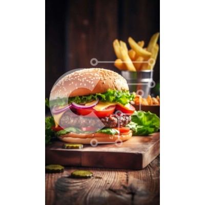 Υπάρχει δυνατότητα προσωποποίησης με δική σας φωτογραφία και προσαρμογής διαστάσεων κατόπιν παραγγελίας. Το συγεκεριμενο Puzzle 10x10 cm – 25 κομμ παρουσιαζει Αυτή η εικόνα παρουσιάζει ένα νόστιμο χάμπουργκερ με φρέσκο μαρούλι και ντομάτα, που σερβίρεται δίπλα σε τραγανές τηγανητές πατάτες, όλα τοποθετημένα σε ένα ρουστίκ ξύλινο τραπέζι. Το μπιφτέκι μπιφτέκι φαίνεται ζουμερό και άψογα μαγειρεμέν