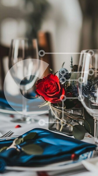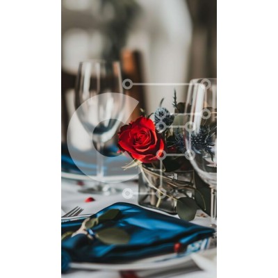 Υπάρχει δυνατότητα προσωποποίησης με δική σας φωτογραφία και προσαρμογής διαστάσεων κατόπιν παραγγελίας. Το συγεκεριμενο Puzzle 10x10 cm – 25 κομμ παρουσιαζει Η εικόνα δείχνει μια όμορφα στρωμένη τραπεζαρία με ασημικά, χαρτοπετσέτες και μια εκπληκτική διάταξη από κόκκινα τριαντάφυλλα. Πολλά πιρούνια και μαχαίρια είναι κομψά τοποθετημένα στο τραπέζι, υποδηλώνοντας ένα επίσημο σκηνικό φαγητού. Ένα γ