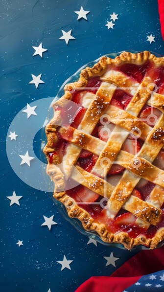 Υπάρχει δυνατότητα προσωποποίησης με δική σας φωτογραφία και προσαρμογής διαστάσεων κατόπιν παραγγελίας. Το συγεκεριμενο Puzzle 10x10 cm – 25 κομμ παρουσιαζει Η εικόνα παρουσιάζει μια πίτα που κάθεται πάνω σε φόντο με θέμα την αμερικανική σημαία. Η πίτα είναι διακοσμημένη με καφασωτό, που προσθέτει οπτικό ενδιαφέρον στη συνολική σκηνή. Υπάρχουν πολλά αστέρια και ρίγες ορατά στο βάθος, υποδηλώνοντα