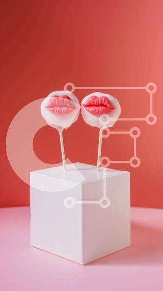 Υπάρχει δυνατότητα προσωποποίησης με δική σας φωτογραφία και προσαρμογής διαστάσεων κατόπιν παραγγελίας. Το συγεκεριμενο Puzzle 10x10 cm – 25 κομμ παρουσιαζει Η εικόνα παρουσιάζει δύο cake pops με ροζ χείλη πάνω από έναν λευκό κύβο, σε ροζ φόντο. Τα cake pops τοποθετούνται όρθια και φαίνεται να στέκονται μόνα τους. Μπορεί να είναι μέρος μιας επίδειξης για την Ημέρα του Αγίου Βαλεντίνου ή άλλες ειδ