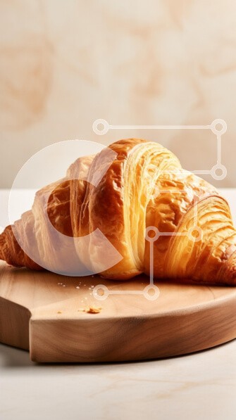 Υπάρχει δυνατότητα προσωποποίησης με δική σας φωτογραφία και προσαρμογής διαστάσεων κατόπιν παραγγελίας. Το συγεκεριμενο Puzzle 10x10 cm – 25 κομμ παρουσιαζει Η εικόνα παρουσιάζει ένα φρεσκοψημένο κρουασάν που στηρίζεται σε μια ξύλινη σανίδα κοπής. Το κρουασάν είναι χρυσοκαφέ, αναδεικνύοντας την λεπτή, πολυεπίπεδη υφή του και την ελκυστική εμφάνισή του. Η βουτυρώδης λάμψη του αντανακλά το ζεστό φω