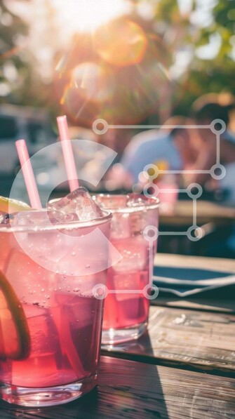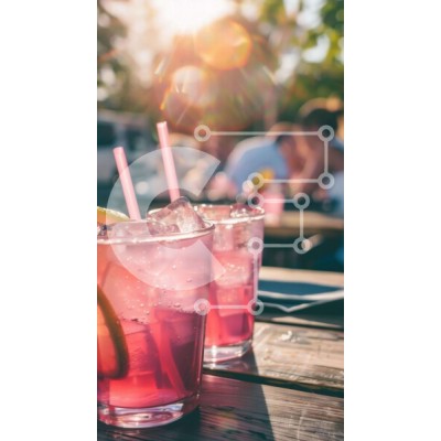 Υπάρχει δυνατότητα προσωποποίησης με δική σας φωτογραφία και προσαρμογής διαστάσεων κατόπιν παραγγελίας. Το συγεκεριμενο Puzzle 10x10 cm – 25 κομμ παρουσιαζει Δύο ροζ ποτήρια με πάγο και λεμόνι σε ένα ξύλινο τραπέζι, που περιβάλλεται από ανθρώπους που απολαμβάνουν τα ποτά τους σε εξωτερικούς χώρους. Άνθρωποι που κάθονται γύρω από το τραπέζι, είτε τρώνε είτε πίνουν από τα ποτήρια. Ένα μοναδικό Puz