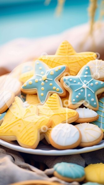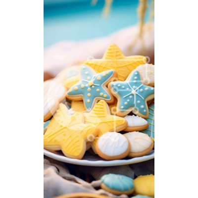 Υπάρχει δυνατότητα προσωποποίησης με δική σας φωτογραφία και προσαρμογής διαστάσεων κατόπιν παραγγελίας. Το συγεκεριμενο Puzzle 10x10 cm – 25 κομμ παρουσιαζει Η εικόνα δείχνει ένα πιάτο με μπισκότα στολισμένο με διακοσμητικά με θέμα τη θάλασσα, όπως αστερίες και κοχύλια. Διάφορα σχέδια μπισκότων, από απλά έως περίπλοκα, εμφανίζονται στο πιάτο. Μερικά μπισκότα στοιβάζονται ενώ άλλα τοποθετούνται κα