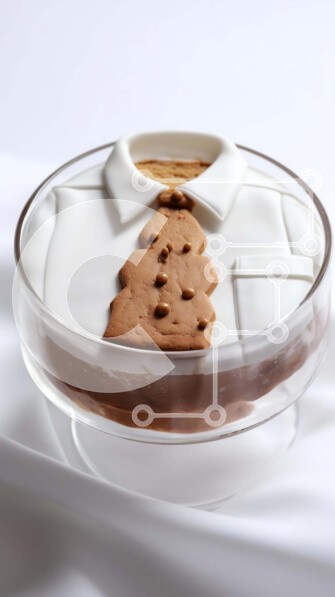 Υπάρχει δυνατότητα προσωποποίησης με δική σας φωτογραφία και προσαρμογής διαστάσεων κατόπιν παραγγελίας. Το συγεκεριμενο Puzzle 10x10 cm – 25 κομμ παρουσιαζει Αυτή η εικόνα παρουσιάζει ένα περίτεχνα διακοσμημένο κέικ σε σχήμα γραβάτας τοποθετημένο σε ένα διαφανές γυάλινο μπολ, που περιβάλλεται από μπισκότα. Ένα λευκό πουκάμισο τοποθετείται πάνω από το κέικ, ενισχύοντας περαιτέρω το διακοσμητικό σχ