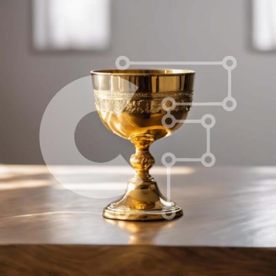 Υπάρχει δυνατότητα προσωποποίησης με δική σας φωτογραφία και προσαρμογής διαστάσεων κατόπιν παραγγελίας. Το συγεκεριμενο Puzzle 10x10 cm – 25 κομμ παρουσιαζει Η εικόνα παρουσιάζει ένα χρυσό κύπελλο σε ένα ανοιχτό ξύλινο τραπέζι, που πιθανότατα χρησιμοποιείται για τελετουργικούς σκοπούς, όπως η μάζα ή οι γάμοι. Πολλά παράθυρα στο φόντο υποδηλώνουν ότι εισέρχεται φυσικό φως στο δωμάτιο. Ένα μοναδικ