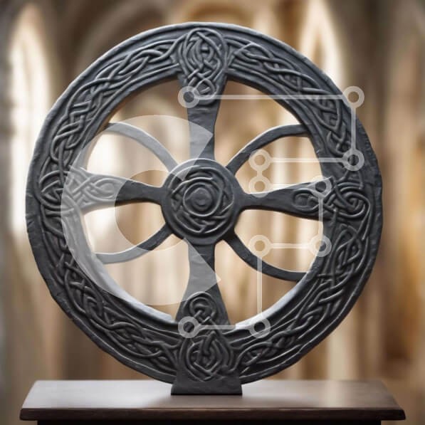Υπάρχει δυνατότητα προσωποποίησης με δική σας φωτογραφία και προσαρμογής διαστάσεων κατόπιν παραγγελίας. Το συγεκεριμενο Puzzle 10x10 cm – 25 κομμ παρουσιαζει Η εικόνα παρουσιάζει έναν περίτεχνο, σκουρόχρωμο τροχό με κέλτικο σχέδιο πάνω του. Τοποθετείται πάνω από την ξύλινη βάση, η οποία θα μπορούσε να χρησιμοποιηθεί για την προβολή του τροχού σε δημόσιους χώρους. Ο τροχός μπορεί να έχει δημιουργη