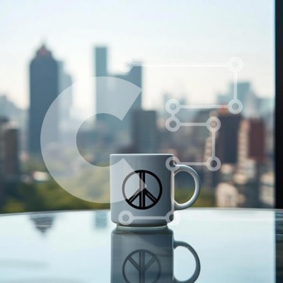 Υπάρχει δυνατότητα προσωποποίησης με δική σας φωτογραφία και προσαρμογής διαστάσεων κατόπιν παραγγελίας. Το συγεκεριμενο Puzzle 10x10 cm – 25 κομμ παρουσιαζει Η εικόνα απεικονίζει μια λευκή κούπα με ένα σύμβολο ειρήνης που εμφανίζεται σε περίοπτη μαύρο χρώμα. Τοποθετείται σε μια αντανακλαστική επιφάνεια, με τον ορίζοντα της πόλης θολό στο φόντο, υποδηλώνοντας ένα ζωντανό αστικό περιβάλλον. Το φως