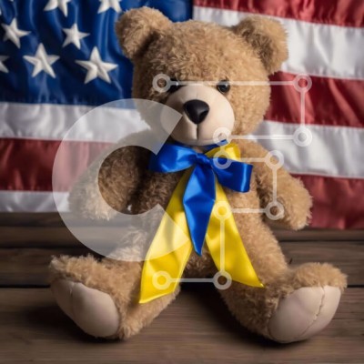 Υπάρχει δυνατότητα προσωποποίησης με δική σας φωτογραφία και προσαρμογής διαστάσεων κατόπιν παραγγελίας. Το συγεκεριμενο Puzzle 10x10 cm – 25 κομμ παρουσιαζει Η εικόνα δείχνει ένα καφέ αρκουδάκι τοποθετημένο μπροστά από μια αμερικανική σημαία. Το αρκουδάκι είναι στολισμένο με μπλε και κίτρινες κορδέλες στο λαιμό του. Το πλαίσιο δεν διευκρινίζει εάν το αρκουδάκι είναι διαθέσιμο για αγορά ή για προσ